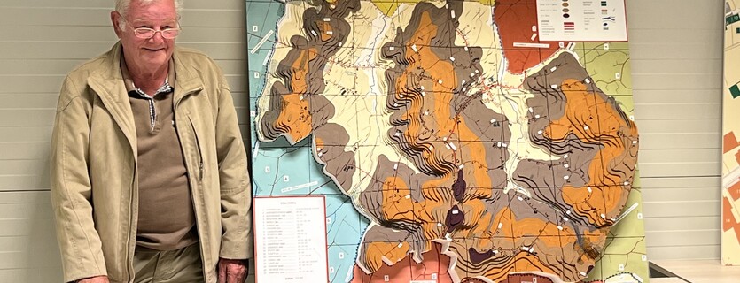 De reliëfmaquette is in ongeveer een half jaar tijd gebouwd met behulp van hoogte- en breedtelijnen die André vond op de gemeentekaart van Bever. Hoewel de verfkleuren niet helemaal naar wens zijn gelukt, vertelt André enthousiast over alles wat er op de maquette te zien is.